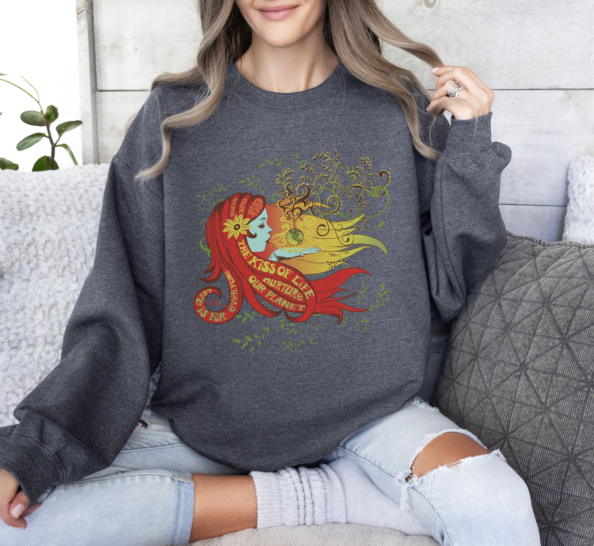 L.I.F.E.® "Love is for Everyone" Kiss of Life Women's Retro Graphic Crewneck Sweatshirt