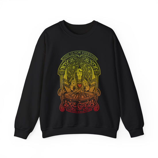 A treasured classic from our original lineup, Love Gypsy returns on the cozy Gildan 18000 fleece crewneck. A bold and expressive statement piece for colder seasons. The glowing gradient artwork takes center stage against a deep black backdrop, highlighting the intricate details and soulful symbolism of this fan favorite design.