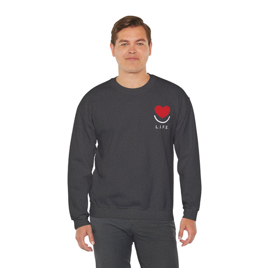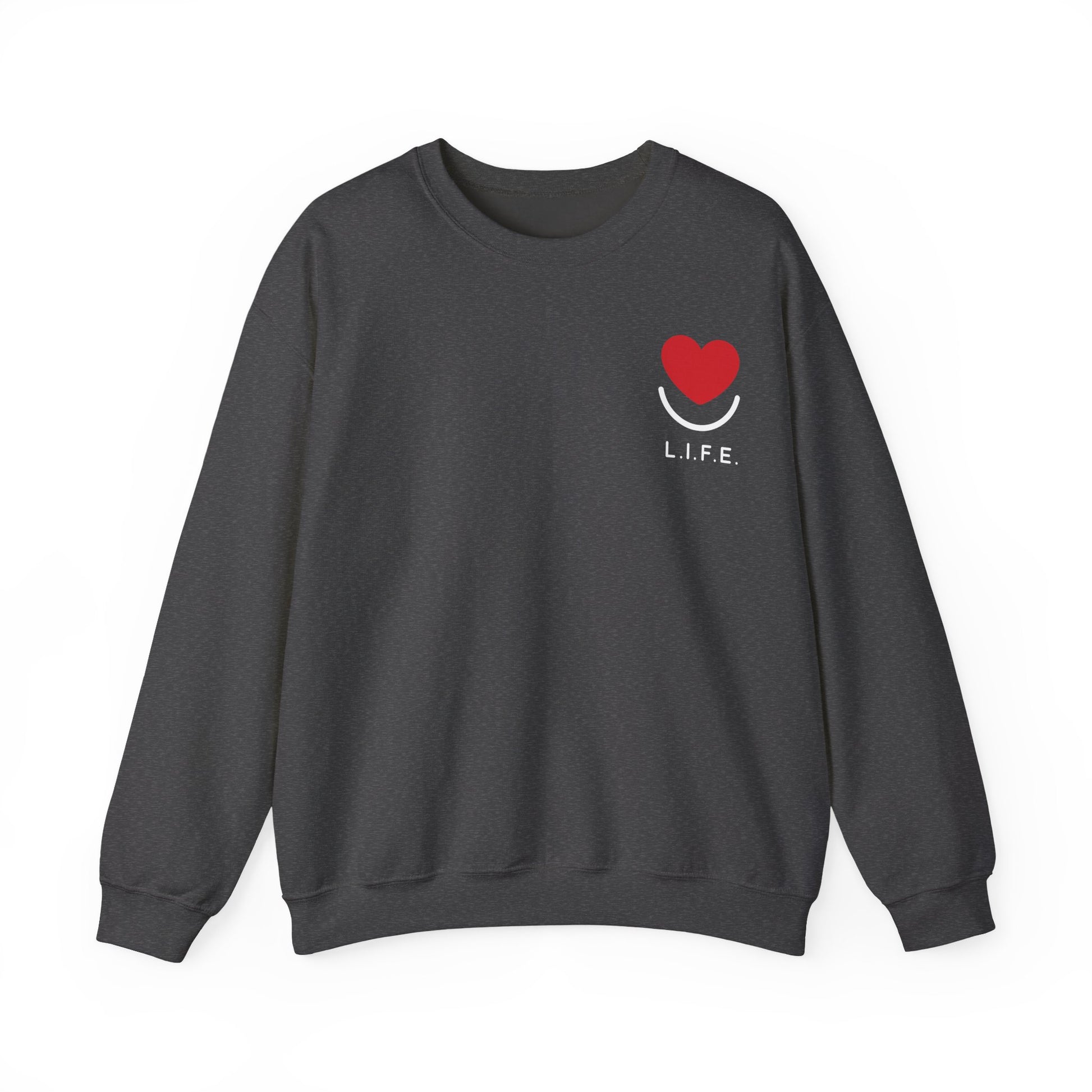 The L.I.F.E. "All-Heart" Crewneck balances a clean left-chest heart logo with a big back message that says it all "Love is for Everyone". This men's/unisex graphic sweatshirt is cozy inside, structured outside, and built for everyday layering without bulk.