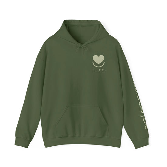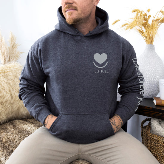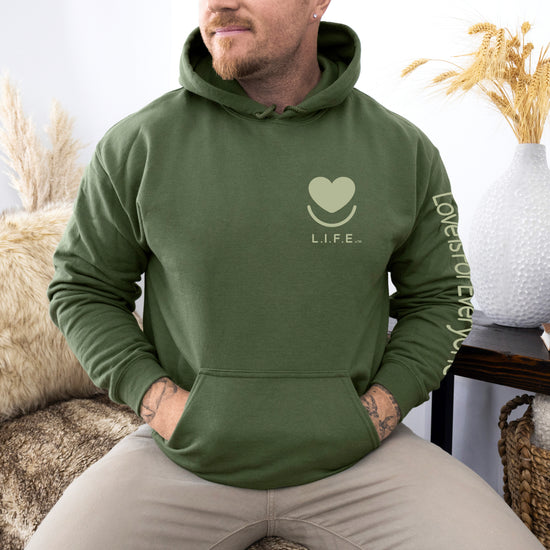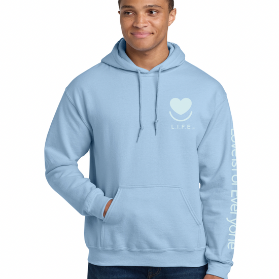 The L.I.F.E. "Love is for Everyone" Soft-Focus Tonal Hoodie blends our signature heart logo into the fabric for a clean, minimal look that still carries big meaning. This men's/unisex graphic hoodie has a cozy fleece interior, relaxed fit and durable details you'll reach for day after day.